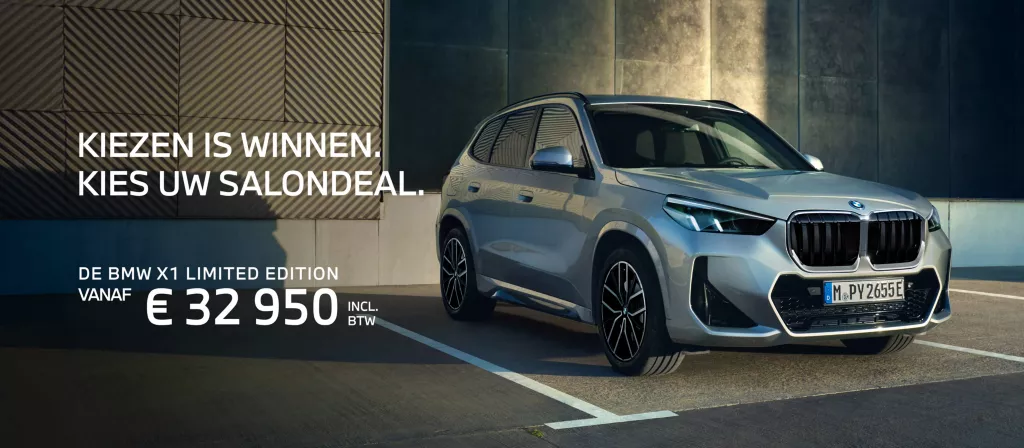 2 Aanbod bestaat uit 20% korting op catalogus prijs op BMW Accessoire Zomerwielen en gratis BMW winter sterbanden. Een Originele BMW Accessoire Zomerwielen set bestaat uit 4 zomerbanden gemonteerd op 4 Originele BMW Accessoire velgen. De aangeboden BMW Winterbanden worden gemonteerd op de oorspronkelijke velgen van het voertuig ter vervanging van de zomerbanden af fabriek. De originele zomerbanden die af fabriek gemonteerd waren, worden niet mee geleverd. Recytyre is niet inbegrepen. De actie is geldig van 14 november 2025 tot en met 9 maart 2026 bij de deelnemende BMW Partners en geldt uitsluitend voor de Limited Edition versies. Deze actie is niet cumuleerbaar met andere lopende acties en onder voorbehoud van beschikbaarheid. Actie enkel geldig voor particulieren. De vermelde actie voorwaarde zijn steeds onder voorwaarde van type fout en correcties.
